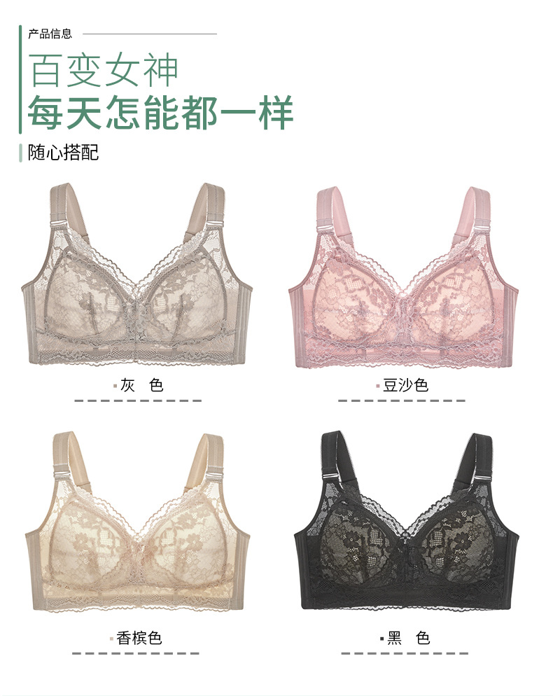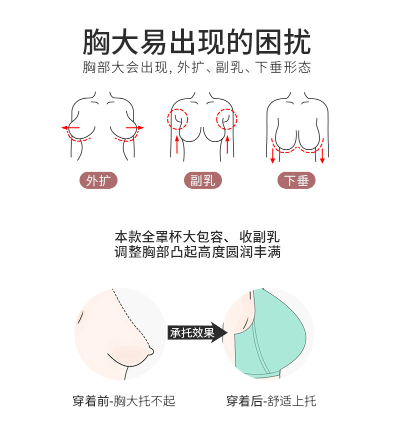 商品名称:薄款内衣女大胸显小大码文胸调整型聚拢上托收副乳防下垂胸罩夏季