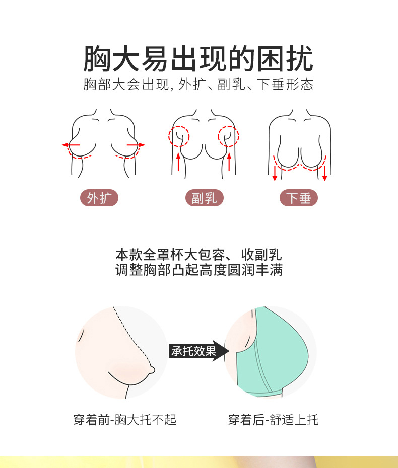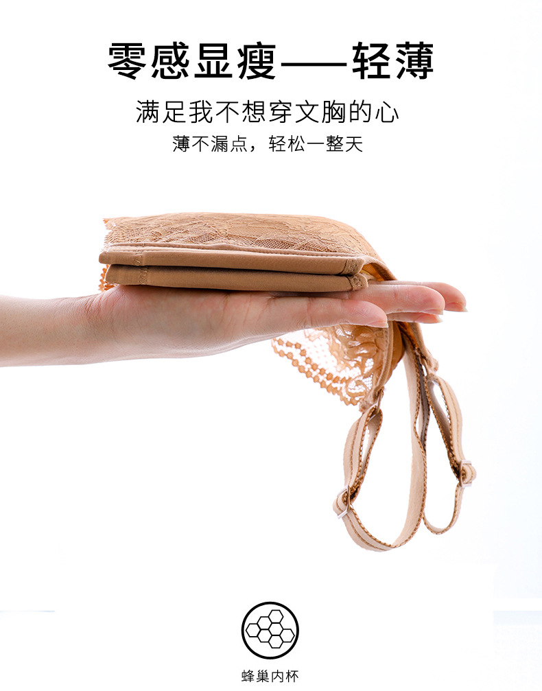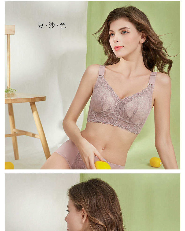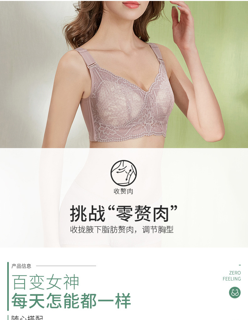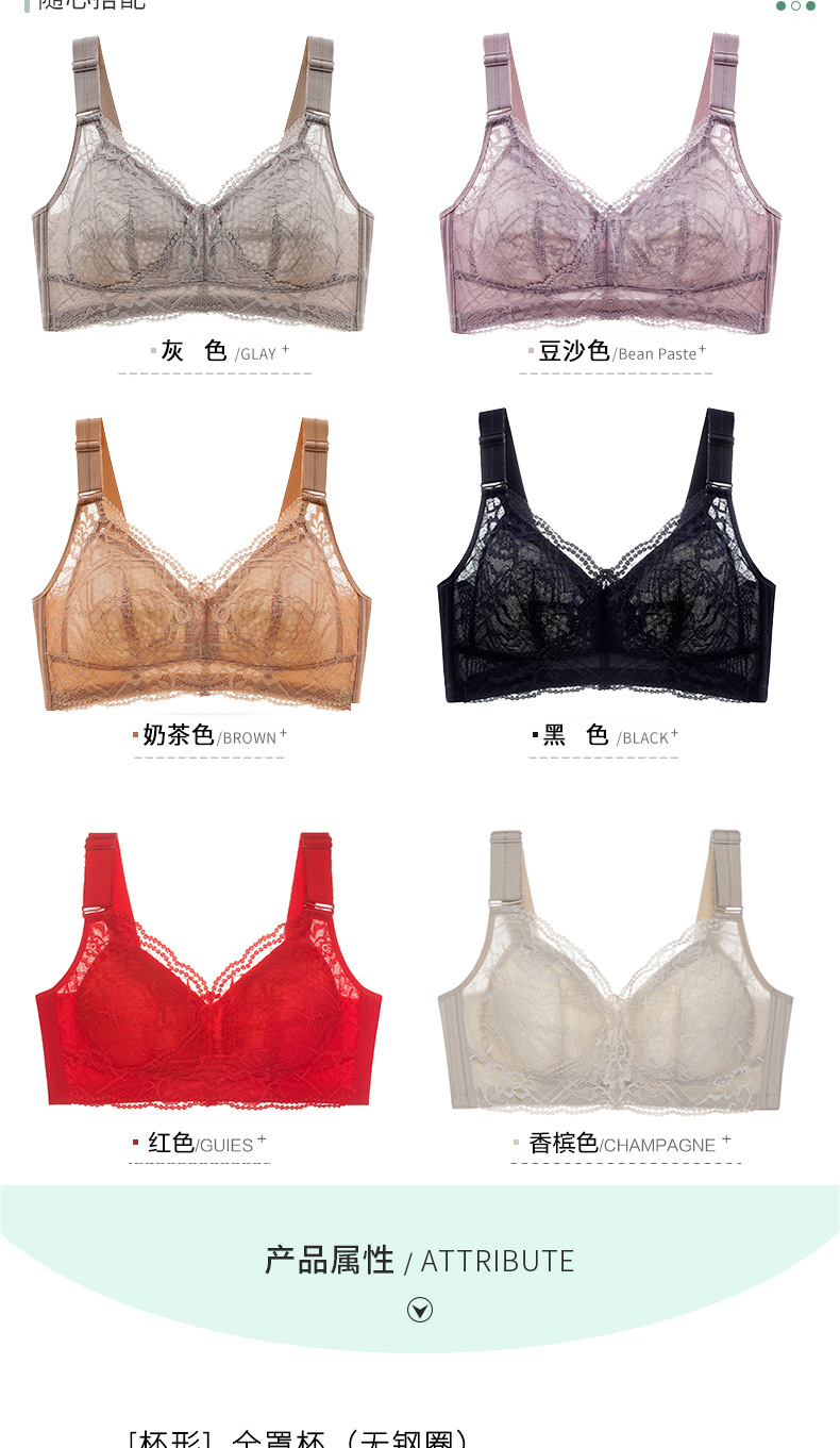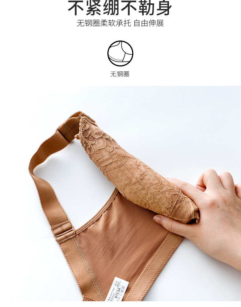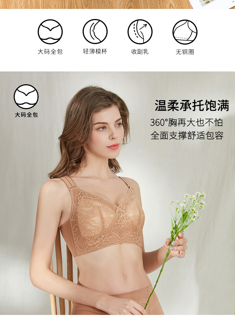 商品名称:无钢圈文胸女大胸显小蕾丝薄款聚拢收副乳防下垂透气调整型文胸罩