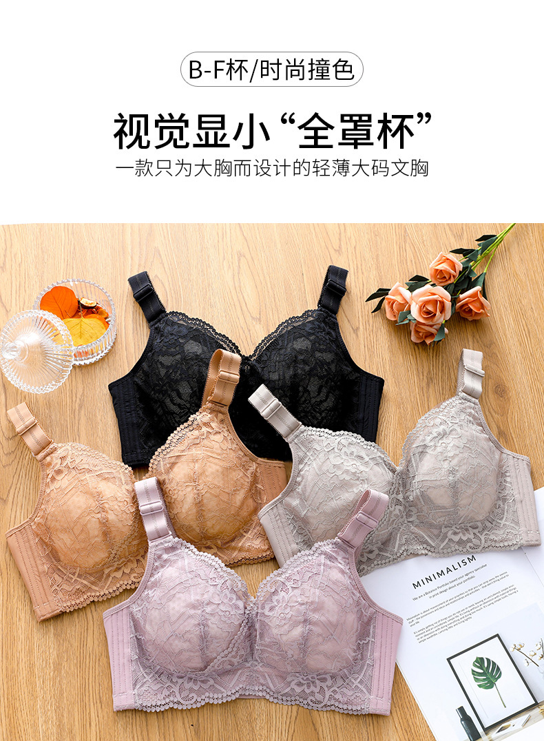 无钢圈文胸女大胸显小蕾丝薄款聚拢收副乳防下垂透气调整型文胸罩