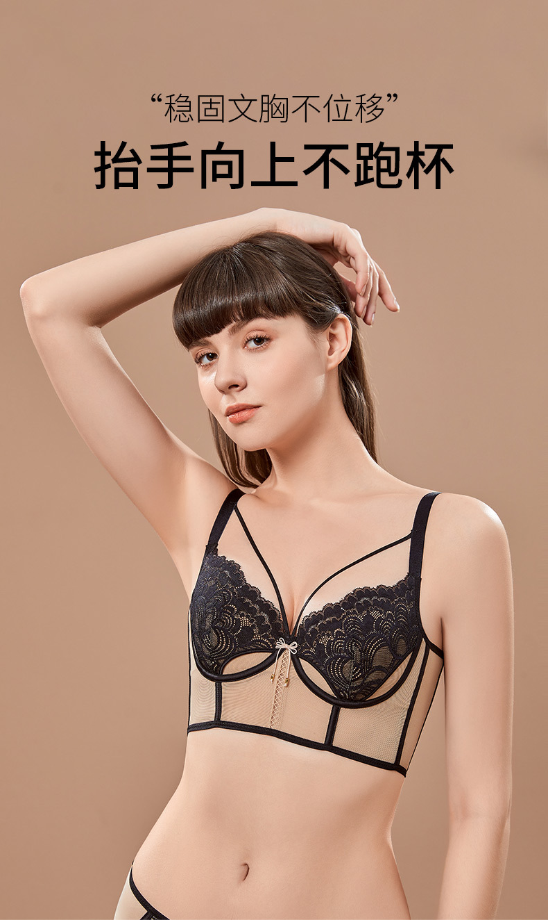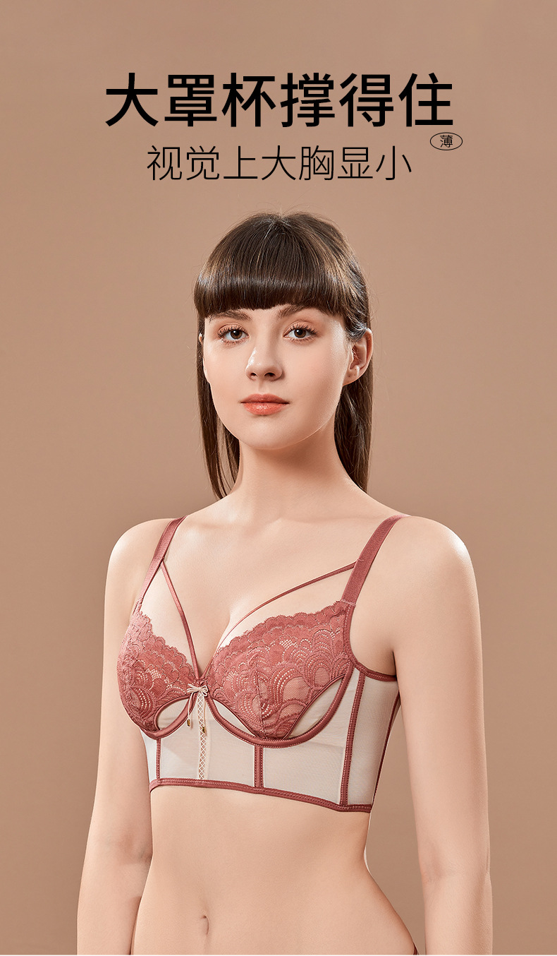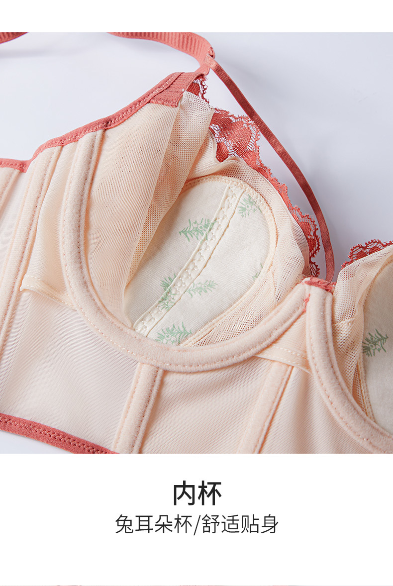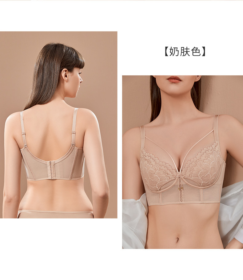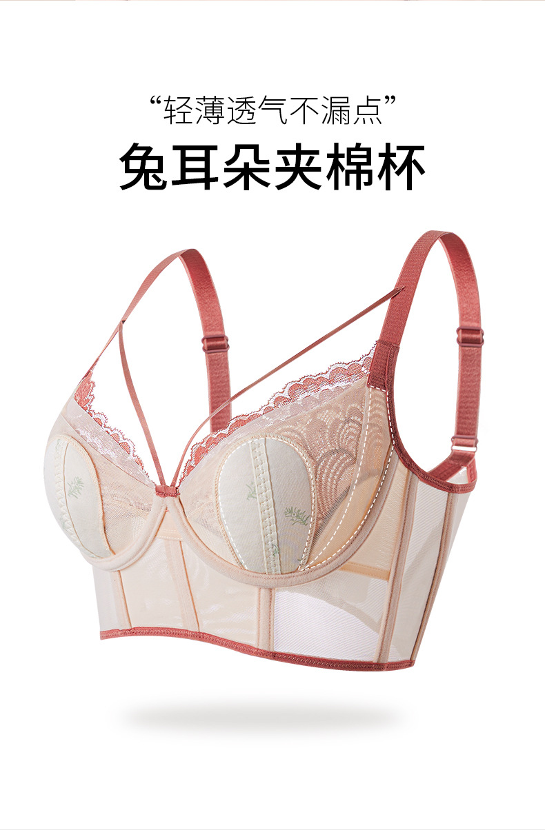 商品名称:兔耳朵蕾丝内衣女大胸显小薄款软钢圈上托防下垂收副乳文胸调整型
