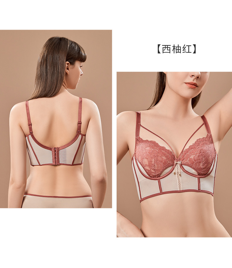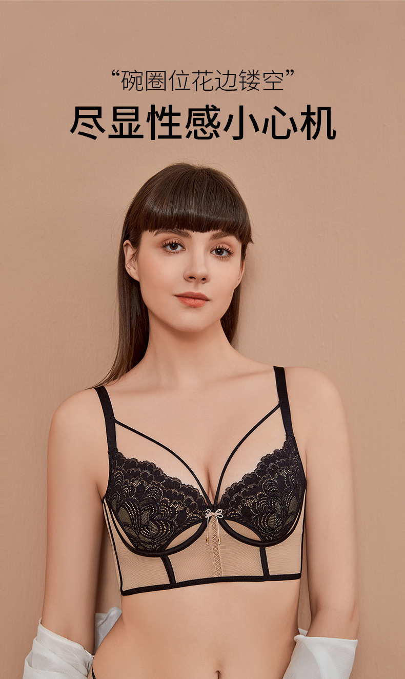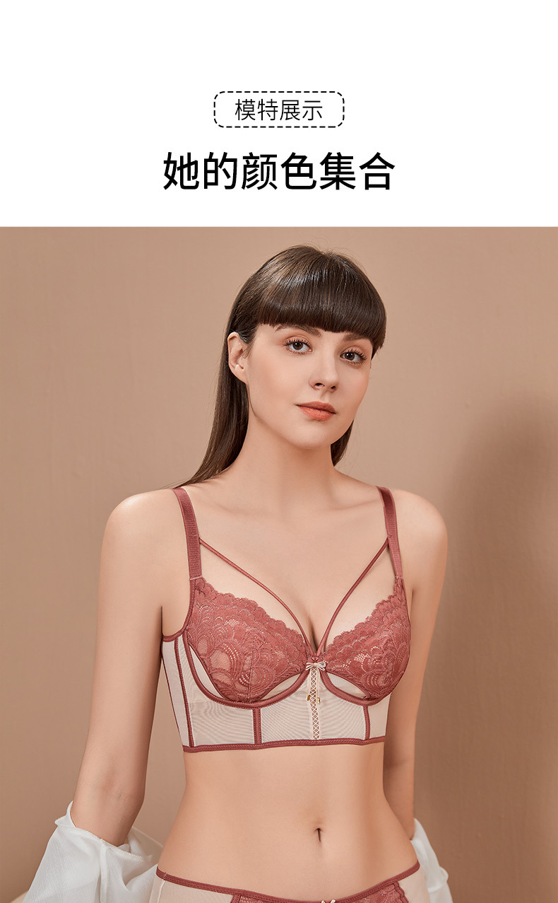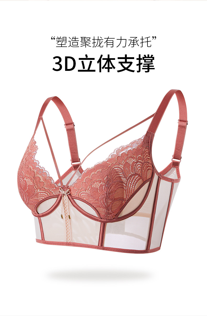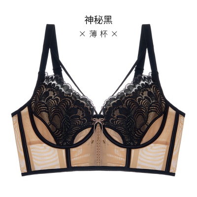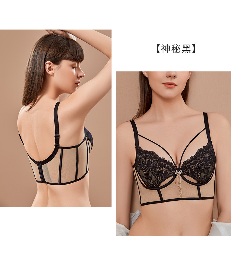 商品名称:兔耳朵蕾丝内衣女大胸显小薄款软钢圈上托防下垂收副乳文胸调整型