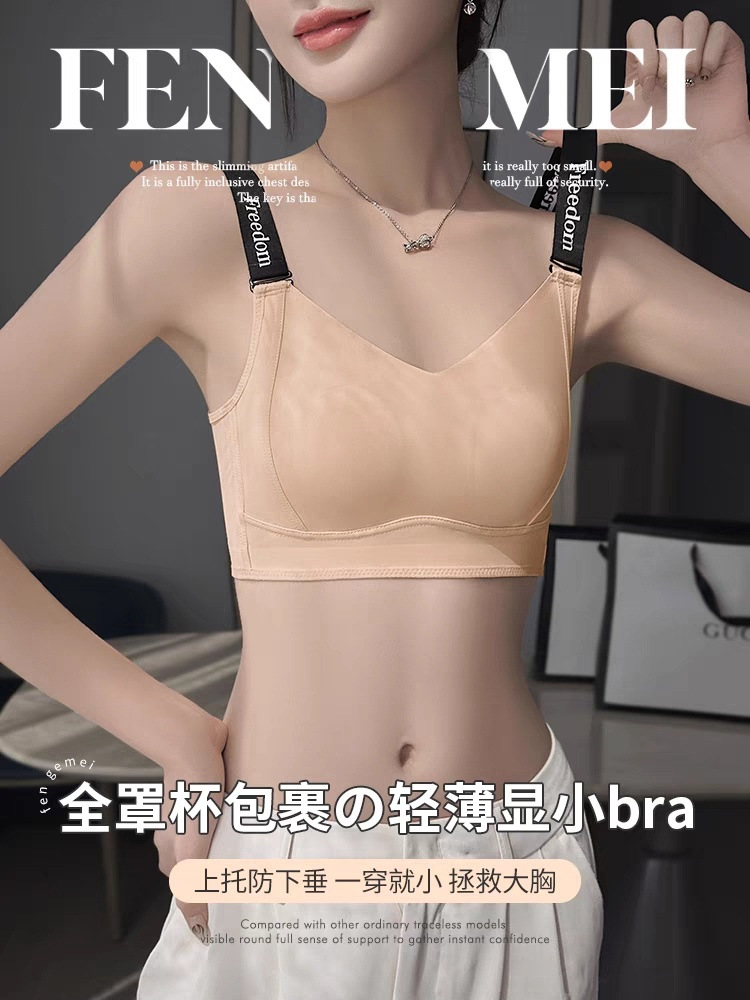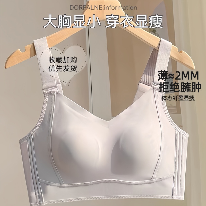 无痕大胸显小内衣女全罩杯薄款兔耳朵收副乳防下垂束胸大码文胸夏