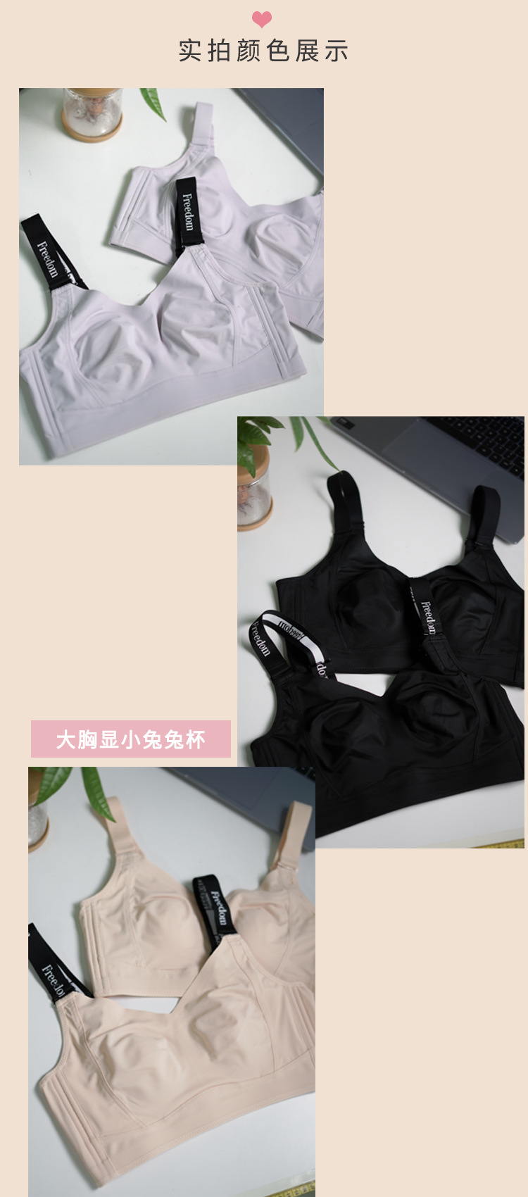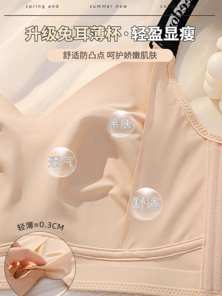 商品名称:无痕大胸显小内衣女全罩杯薄款兔耳朵收副乳防下垂束胸大码文胸夏