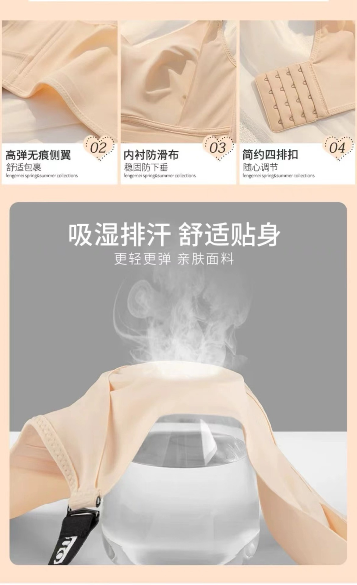 功能:无痕,透气,上托,隐形,调整型,舒适,侧收,收副乳,大胸显小