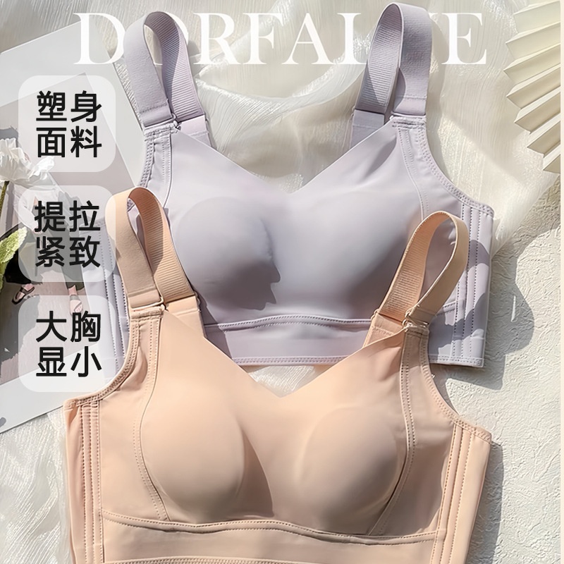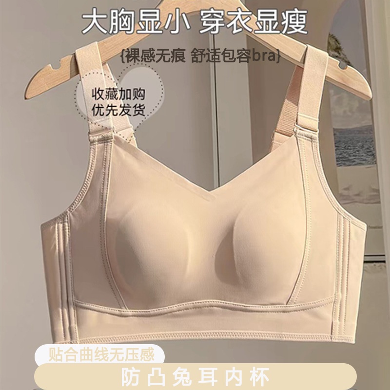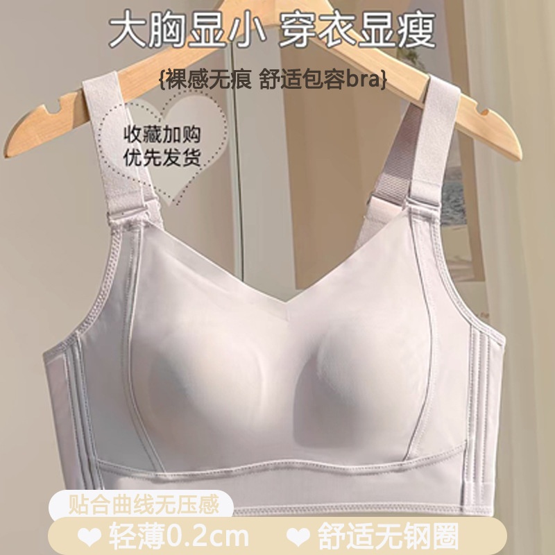 超薄无钢圈大胸显小防下垂收副乳聚拢全罩杯无痕大码塑形夏季文胸