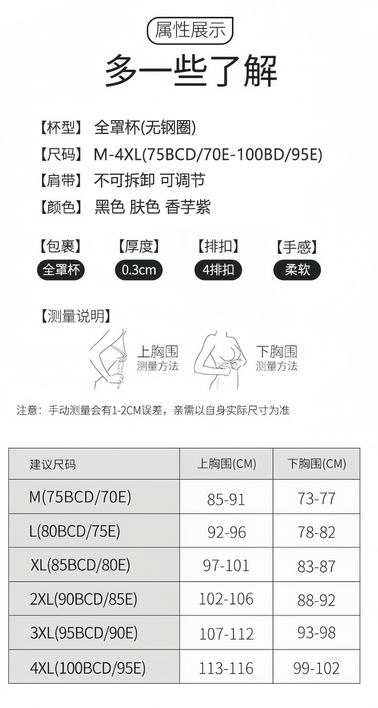 商品名称:超薄无钢圈大胸显小防下垂收副乳聚拢全罩杯无痕大码塑形夏季文胸