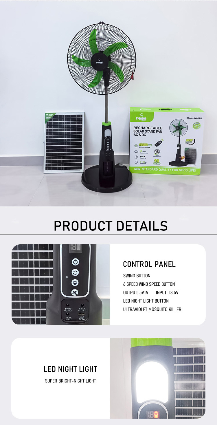IWIN 可定制LOGO颜色新款太阳能风扇可充电可灭蚊落地扇