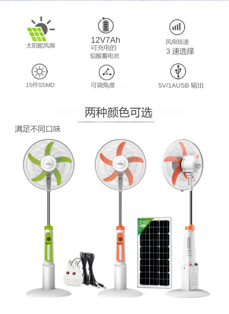 IWIN跨境热销18寸遥控充电户外风扇家用大风力太阳能落地扇节能