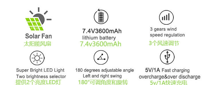 IWIN 定制太阳能桌面风扇usb露营小充电款长续航省电户外