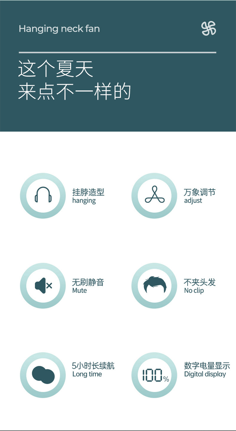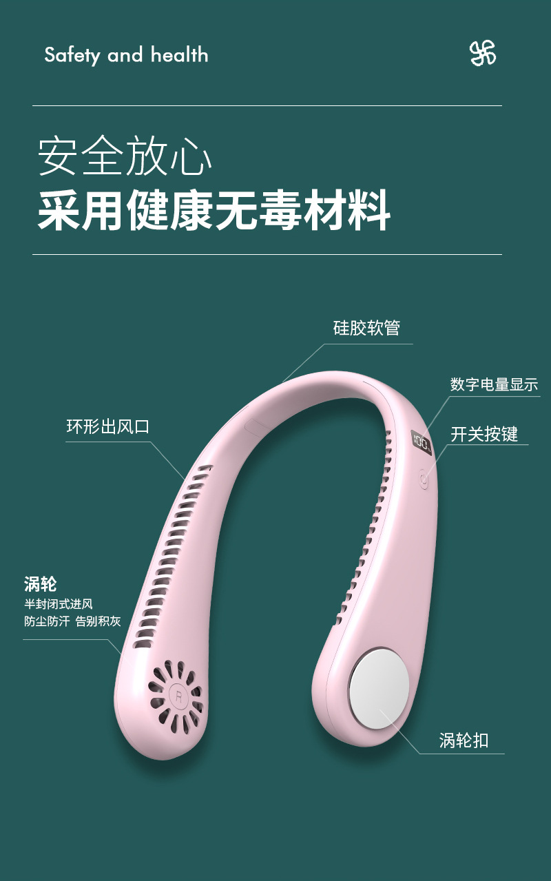 IWIN 2026新款挂脖风扇大风力便携不夹头发学生旅游露营用